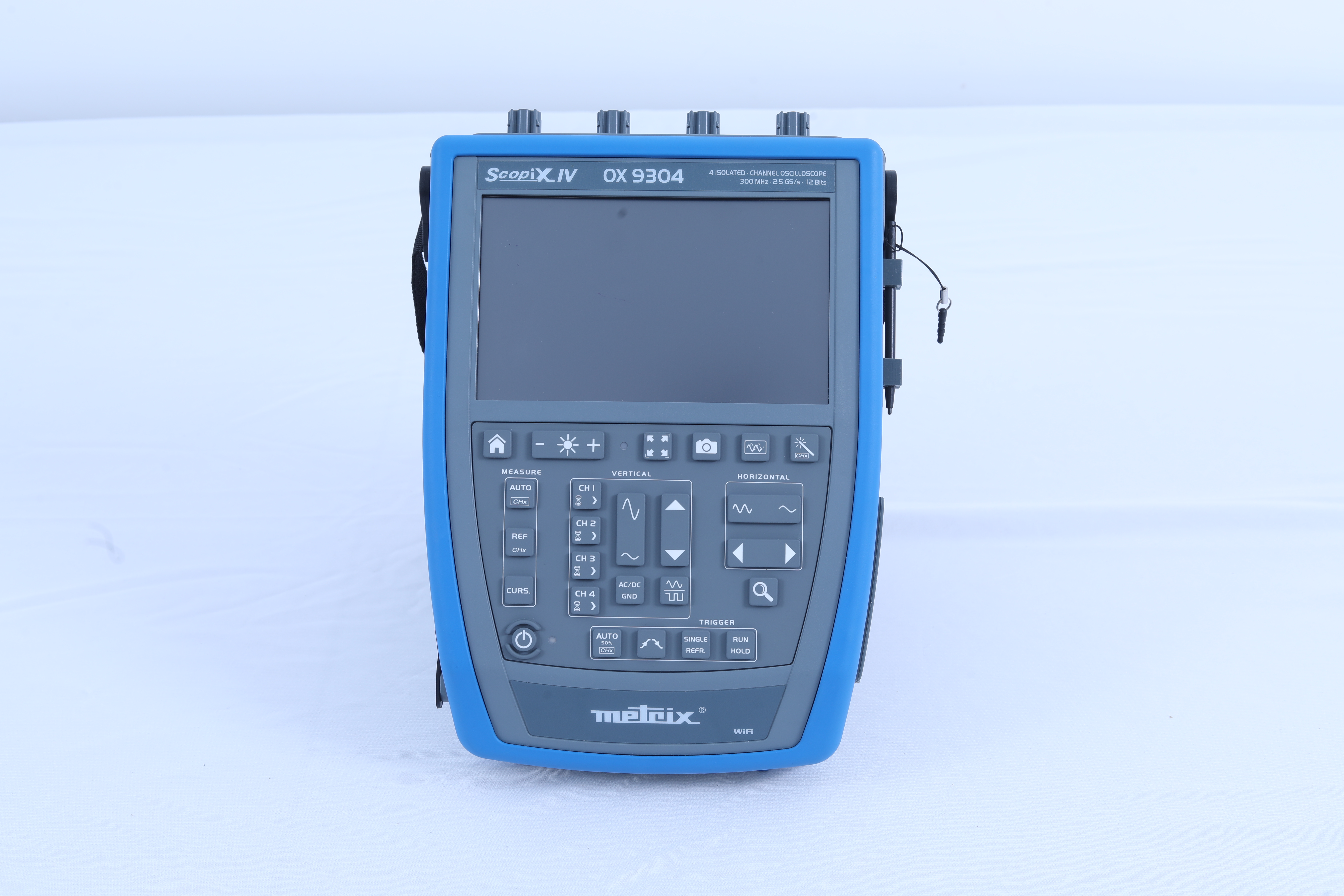 High-performance portable oscilloscope with advanced triggering, analysis capabilities and comprehensive measurement functions including harmonic analysis.